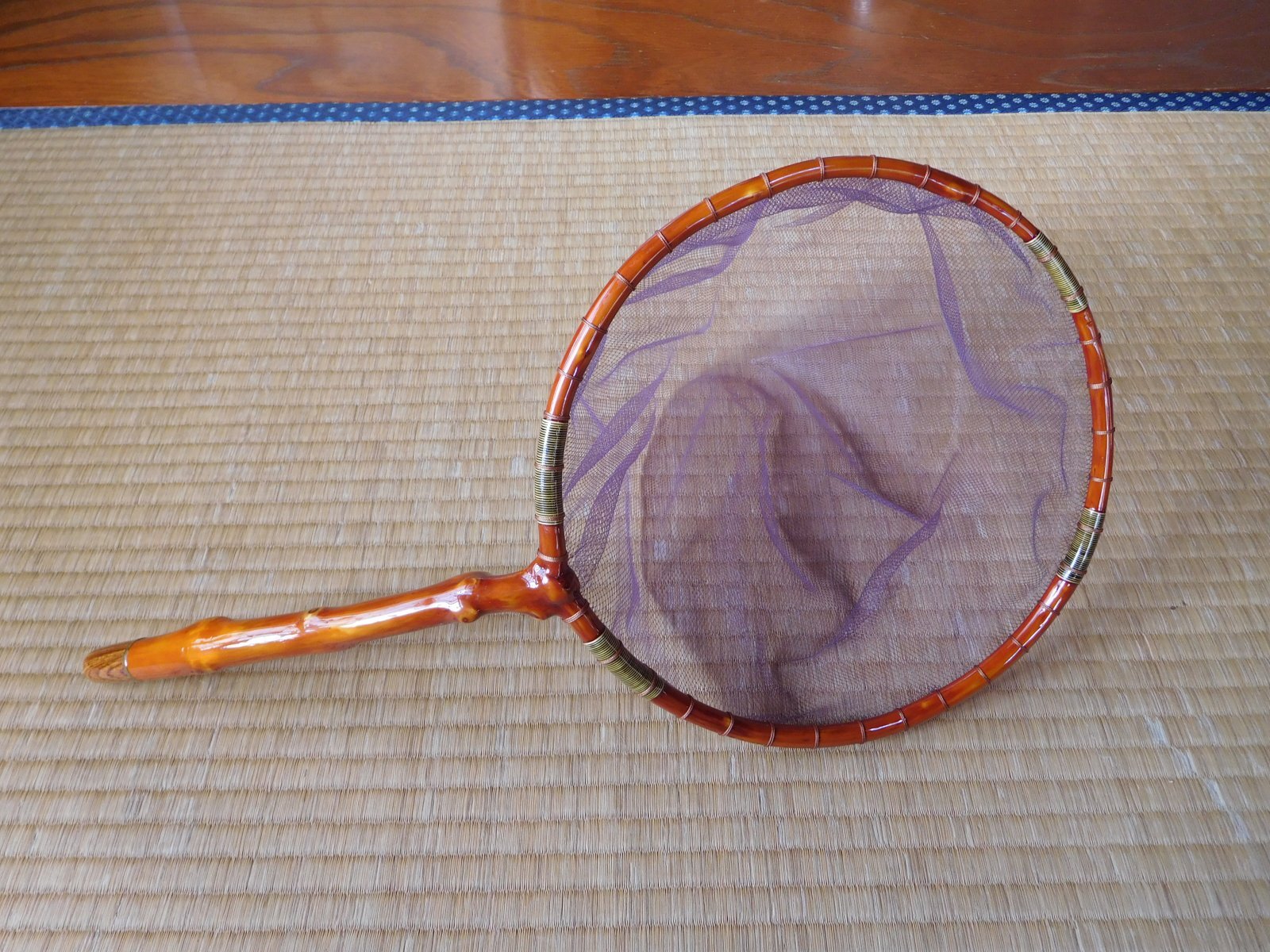Probably the most famous Traditional Wooden Tamo(landing Net) is this "Mankyu Tamo". Mankyu was founded by the welknown artisan Mr. Motoo Yoshimura. He was making these traditional wooden tamo for more than 45 years but passed away in 2012. Now his daughter take over his works and is producing Mankyu Tamo using the materials Mr. Yoshimura has made.